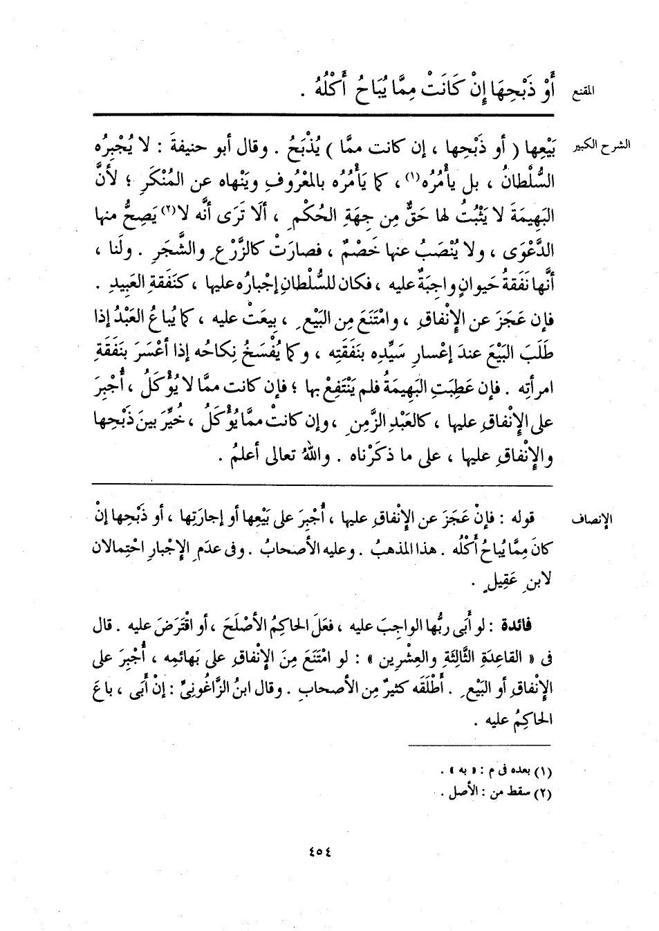 فائدة: لو أَبَى ربُّها الواجِبَ عليه، فعَلَ الحاكِمُ الأصْلَحَ، أو اقْتَرَضَ عليه. قال فى «القاعِدَةِ الثَّالِثَةِ والعِشْرِين»: لو امْتَنَعَ مِنَ الإنْفاقِ على بَهائمِه، أُجْبِرَ على الإنْفاقِ أو البَيْعِ. أطْلَقَه كثيرٌ مِن الأصحابِ. وقال ابنُ الزَّاغُونِىِّ: إنْ أَبَى، باعَ الحاكِمُ عليه.