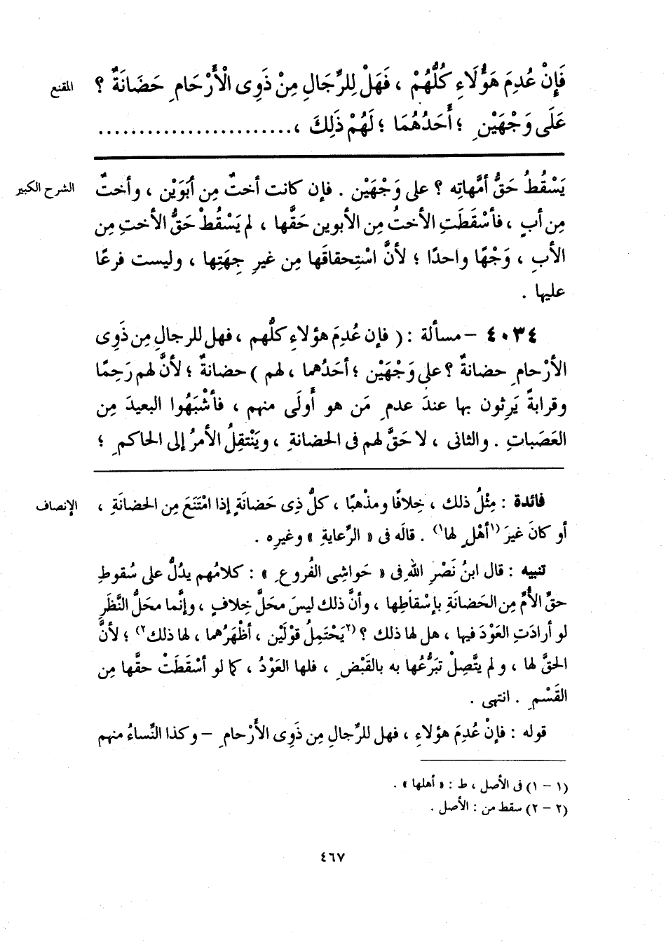 تنبيه: قال ابنُ نَصْرِ اللَّه فى «حَواشِى الفُروعِ»: كلامُهم يدُلُّ على سُقوطِ حق الأم مِن الحَضانَةِ بإسْقاطِها، وأن ذلك ليسَ محَل خِلافٍ، وإنما محَل النَّظَر لو أرادَتِ العَوْدَ فيها، هل لها ذلك؟ [يَحْتَمِلُ قوْلَيْن، أظْهَرُهما، لها ذلك] (¬2)؛ لأن الحقَّ لها، ولم يتصِلْ تبَرعُها به بالقَبْضِ، فلها العَوْدُ، كما لو أسْقَطَتْ حقَّها مِن القَسْمَ. انتهى.