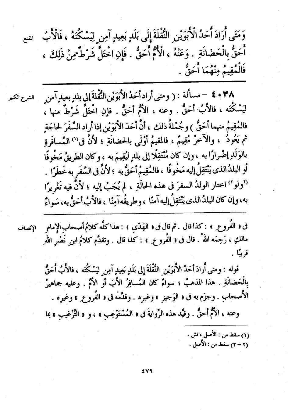 قوله: ومتى أَرادَ أحَدُ الأبوين النُّقْلَةَ إلى بَلَد بَعِيدٍ آمِنٍ ليَسْكُنَه، فالأبُ أَحَقُّ بِالْحَضانَةِ. هذا المذهبُ؛ سواءٌ كان المُسافِرُ الأبَ أو الأمَّ. وعليه جماهيرُ الأصحابِ. وجزَم به فى «الوَجيزِ» وغيرِه. وقدَّمه فى «الفُروعِ» وغيرِه.