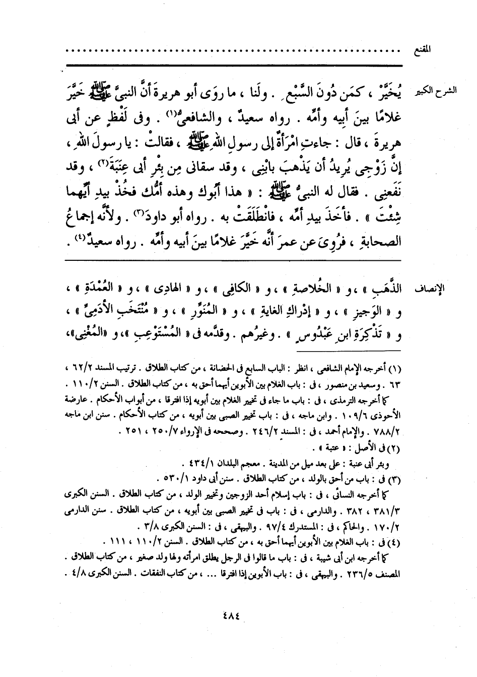 الذَّهبِ»، و «الخُلاصةِ»، و «الكافِى»، و «الهادِى»، و «العُمْدَةِ»، و «الوَجيزِ»، و «إِدْراكِ الغايةِ»، و «المُنَوِّرِ»، و «مُنْتَخَبِ الأدَمِىِّ»، و «تَذْكِرَةِ ابنِ عَبْدُوسٍ». وغيرُهم. وقدَّمه فى «المُسْتَوْعِبِ»، و «المُغْنِى»،