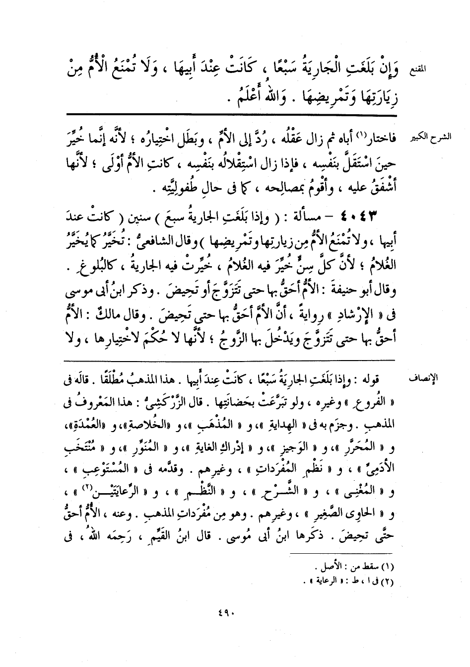 وَإِنْ بَلَغَتِ الْجَارِيَةُ سَبْعًا، كَانَتْ عِنْدَ أَبِيهَا، وَلَا تُمْنَعُ الأُمُّ مِنْ زِيَارَتِهَا وَتَمْرِيضِهَا. وَاللَّهُ أَعْلَمُ.