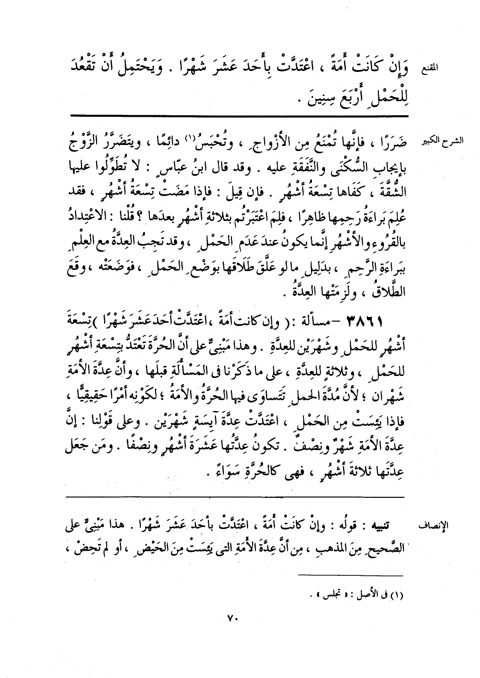وَإنْ كَانَتْ أمَةً، اعْتَدَّتْ بِأَحَدَ عَشَرَ شَهْرًا. وَيَحْتَمِلُ أنْ تَقْعُدَ لِلْحَمْلِ أرْبَعَ سِنِينَ.