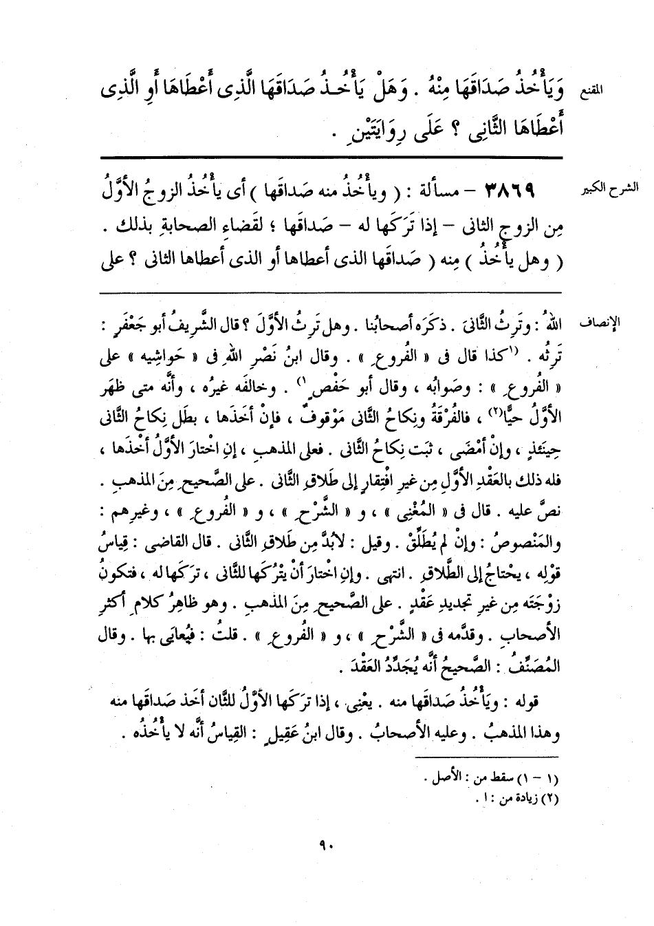 وَيَأخُذُ صَدَاقَهَا مِنْهُ. وَهَلْ يَأخُذُ صَدَاقَها الَّذِي أعطَاهَا أو الَّذِي أعْطَاهَا الثَّانِي؟ عَلَى رِوَايَتَينِ.