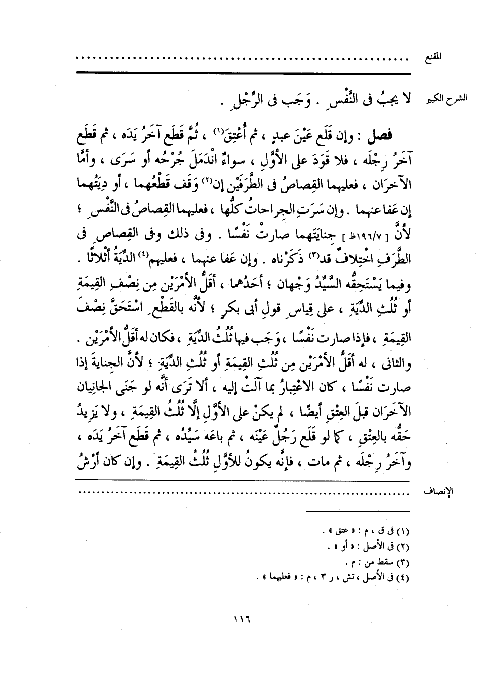 لا يجبُ في النَّفْسِ. وَجَب في الرِّجْلِ.