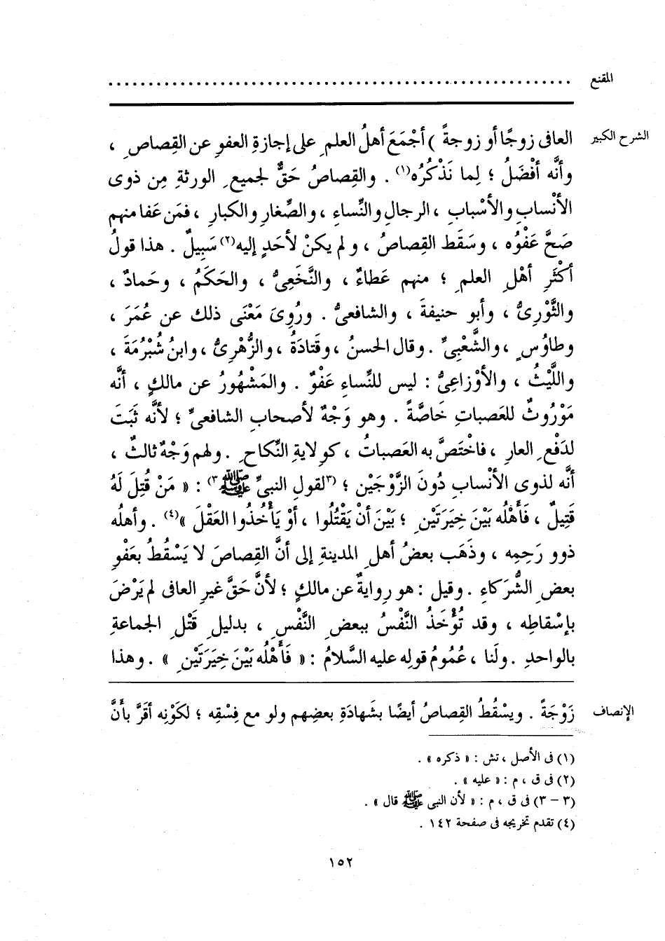 زَوْجَةً. ويسْقُطُ القِصاصُ أيضًا بشَهادَةِ بعضِهم ولو مع فِسْقِه؛ لكَوْنِه أقَرَّ بأَنَّ