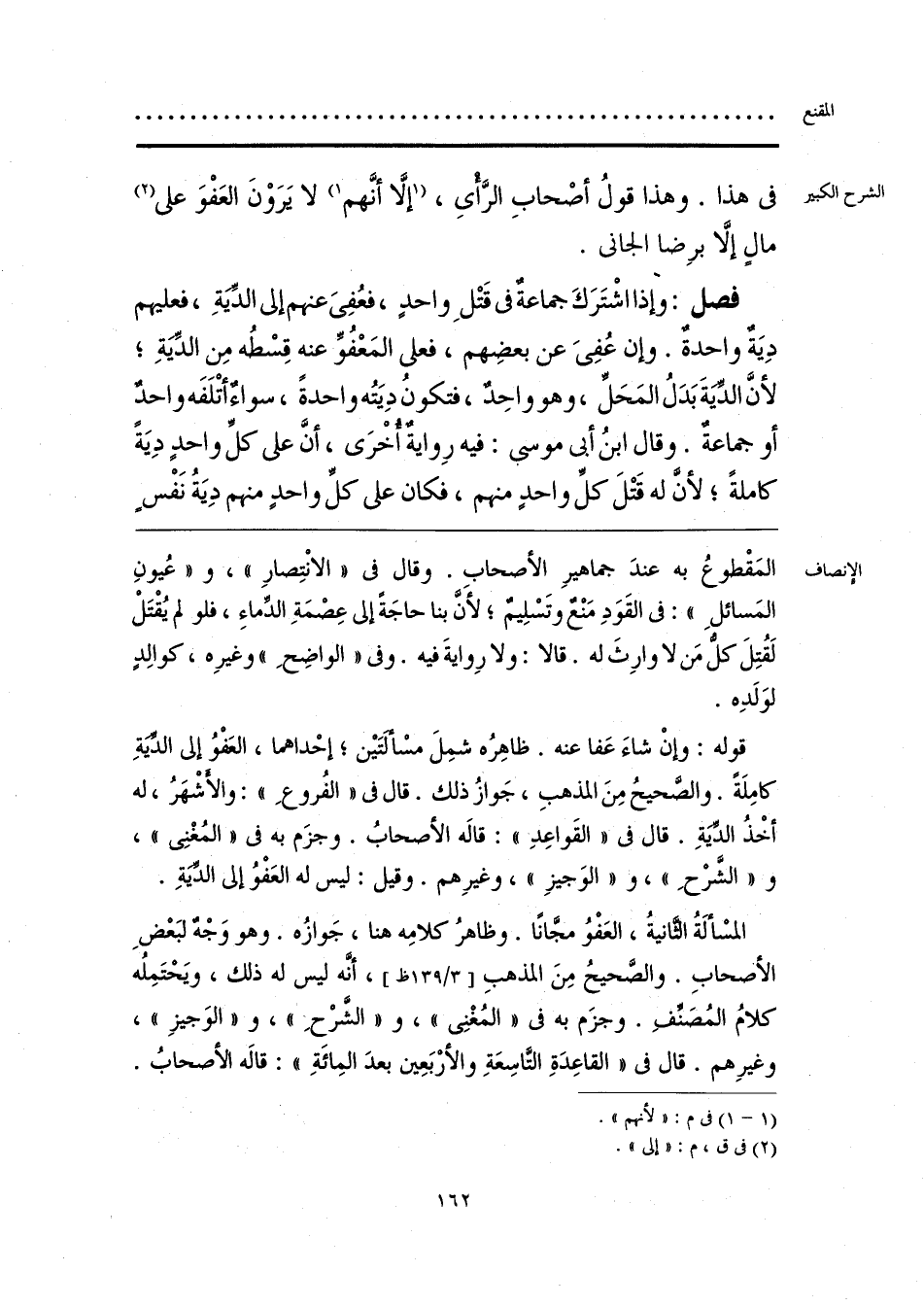قوله: وإنْ شاءَ عَفا عنه. ظاهِرُه شمِلَ مسْألتَيْن؛ إحْداهما، العفوُ إلى الدِّيةِ كامِلَةً. والصَّحيحُ مِنَ المذهبِ، جَوازُ ذلك. قال فى «الفُروعِ»: والأشْهَرُ، له أخْذُ الدِّيةِ. قال فى «القَواعِدِ»: قالَه الأصحابُ. وجزَم به فى «المُغْنِى»، و «الشَّرْحِ»، و «الوَجيزِ»، وغيرِهم. وقيل: ليس له العَفْوُ إلى الدِّيةِ.
