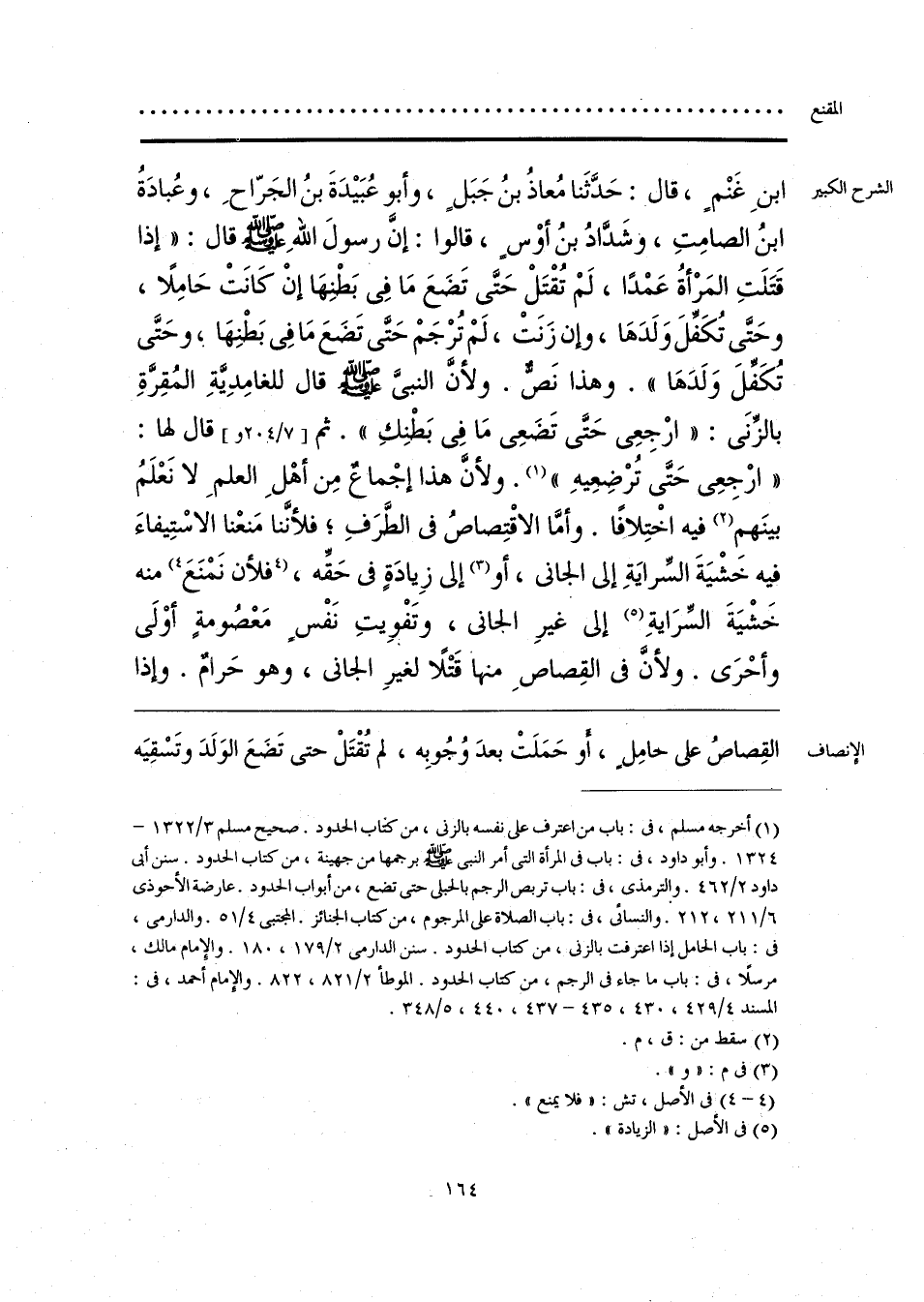 القِصاصُ على حامِلٍ، أو حَمَلَتْ بعدَ وُجُوبِه، لم تُقْتَلْ حتَّى تَضَعَ الوَلَدَ وتَسْقِيَه