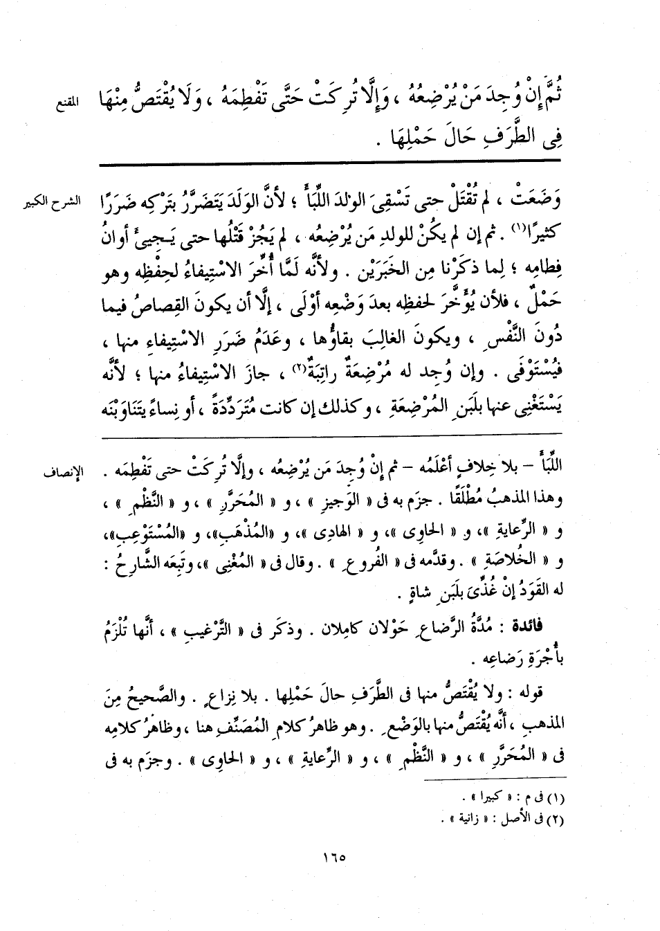 قوله: ولا يُقْتَصُّ منها فى الطَّرَفِ حالَ حَمْلِها. بلا نِزاع. والصَّحيحُ مِنَ المذهبِ، أنَّه يُقْتَصُّ منها بالوَضْعِ. وهو ظاهرُ كلامِ المُصَنِّفِ هنا، وظاهرُ كلامِه فى «المُحَرَّرِ»، و «النَّظْمِ»، و «الرِّعايَةِ»، و «الحاوِى». وجزَم به فى