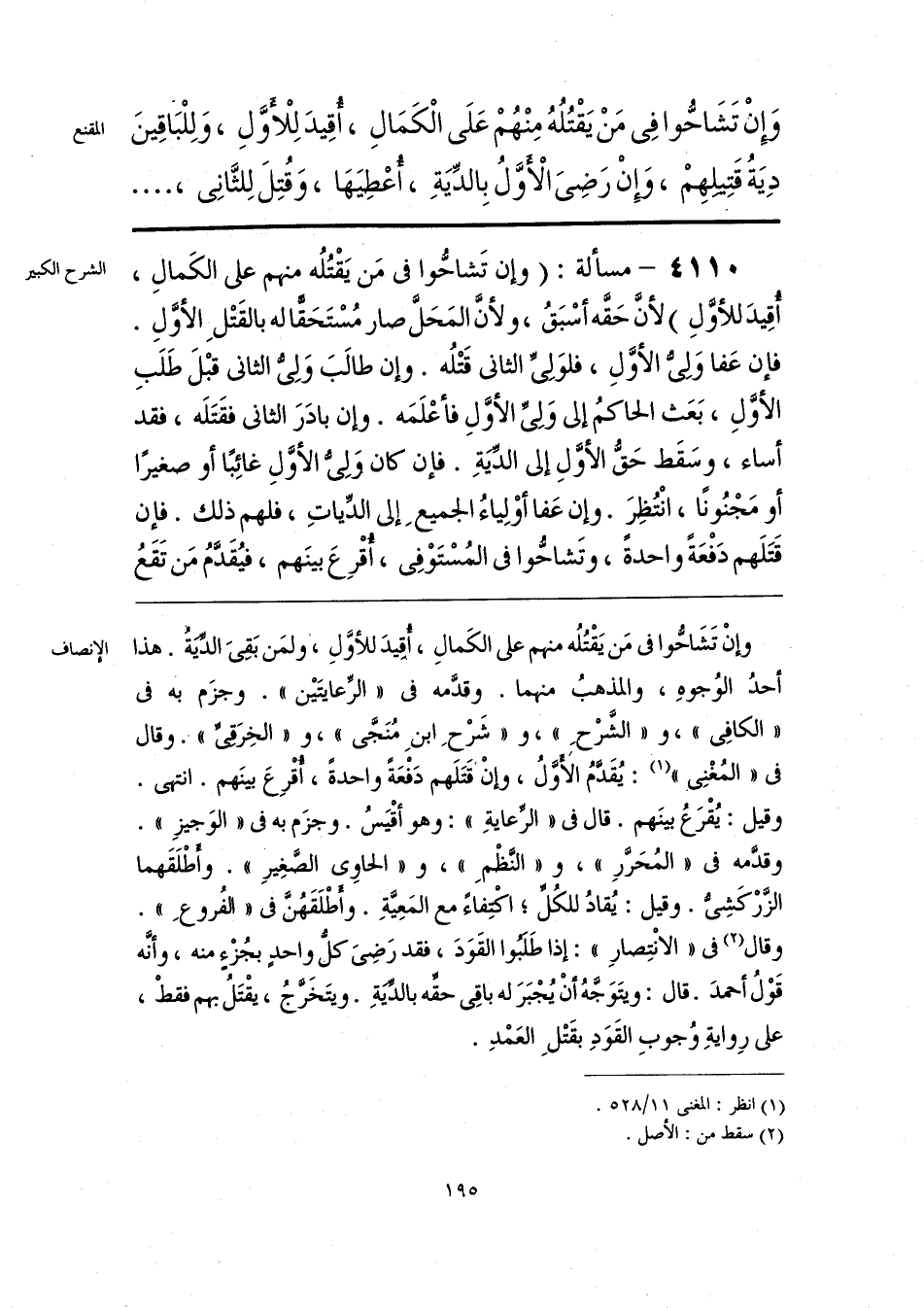 وَإِنْ تَشَاحُّوا فِى مَنْ يَقْتُلُهُ مِنْهُمْ عَلَى الْكَمَالِ، أُقِيدَ لِلأوَّلِ، وَلِلْبَاقِينَ دِيَةُ قَتِيلهِمْ، وَإِنْ رَضىَ الأَوَّلُ بِالدِّيَةِ، أُعْطِيَهَا، وَقُتِلَ لِلثَّانِى،