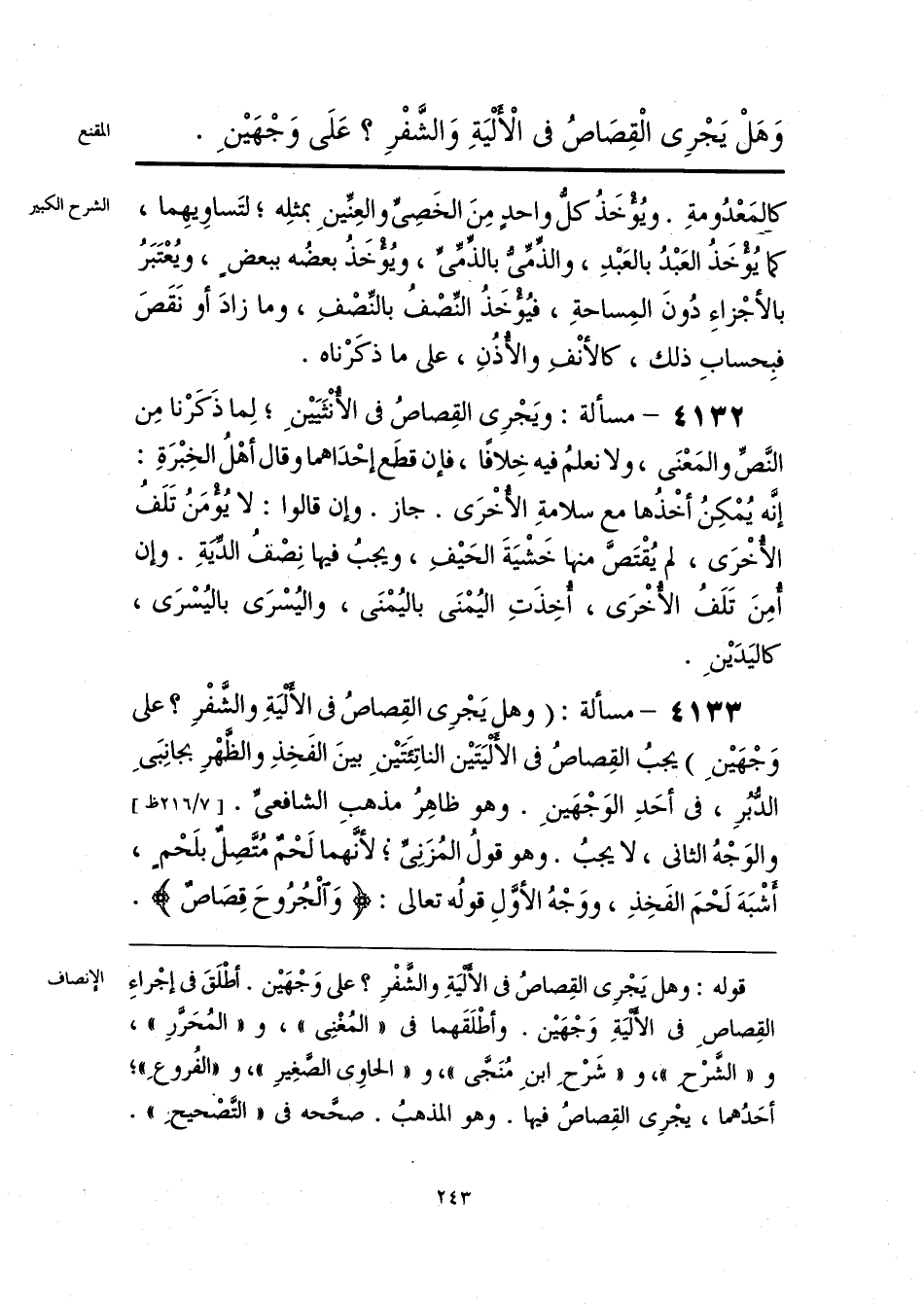 وَهَلْ يَجْرِى الْقِصَاصُ فى الْأَلْيَةِ وَالشَّفْرِ؟ عَلَى وَجْهَيْنِ.