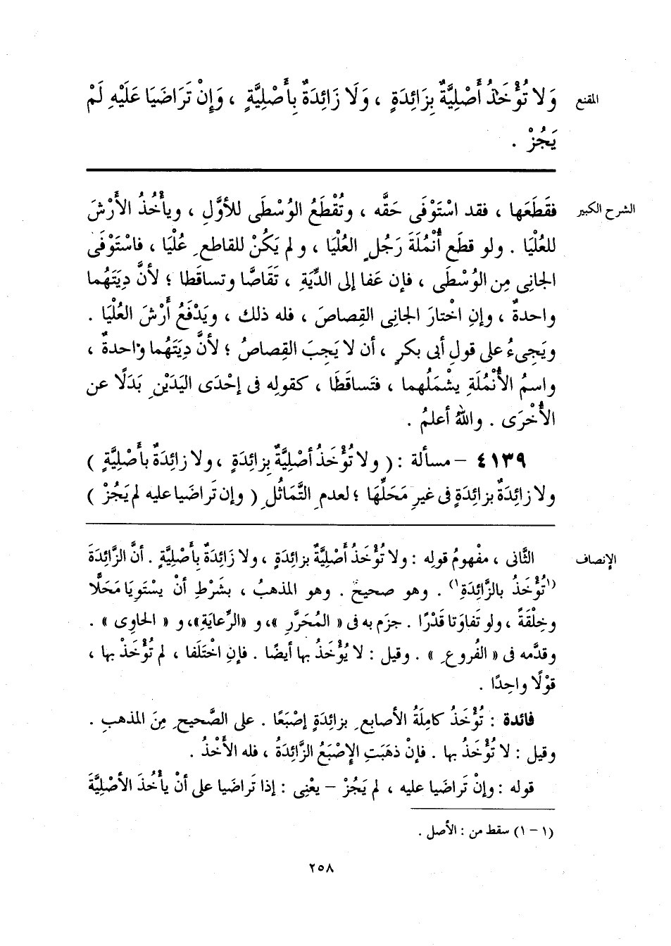 الثَّانى، مفْهومُ قولِه: ولا تُؤْخَذُ أصْلِيَّةٌ بزائِدَةٍ، ولا زَائِدَةٌ بِأصْلِيَّةٍ. أنَّ الزَّائِدَةَ [تُؤْخَذُ بالزَّائِدَةِ] (¬1). وهو صحيحٌ. وهو المذهبُ، بشَرْطِ أَنْ يسْتَوِيَا مَحَلًّا وخِلْقَةً، ولو تَفاوَتا قَدْرًا. جزَم به فى «المُحَرَّرِ»، و «الرِّعايَةِ»، و «الحاوِى». وقدَّمه فى «الفُروعِ». وقيل: لا يُؤْخَذُ بها أيضًا. فإنِ اخْتَلَفا، لم تُؤْخَذْ بها، قوْلًا واحِدًا.