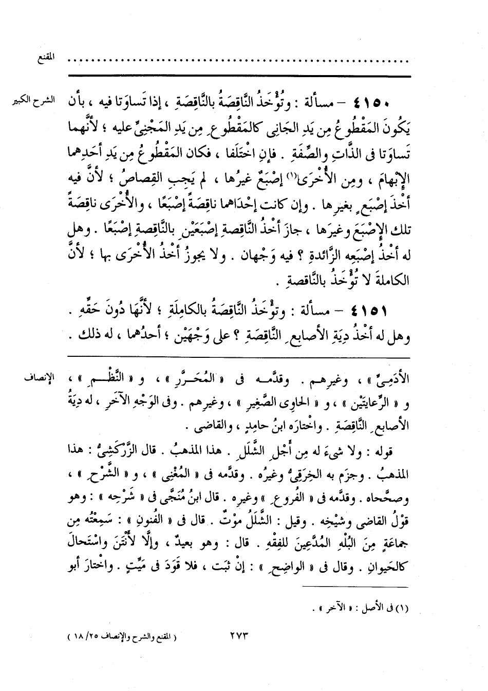 الأدَمِىِّ»، وغيرِهم. وقدَّمه فى «المُحَرَّرِ»، و «النَّظْمِ»، و «الرِّعايتَيْن»، و «الحاوِى الصَّغِيرِ»، وغيرِهم. وفى الوَجْهِ الآخَرِ، له دِيَةُ الأصابعِ النَّاقِصَةِ. واخْتارَه ابنُ حامِدٍ، والقاضى.