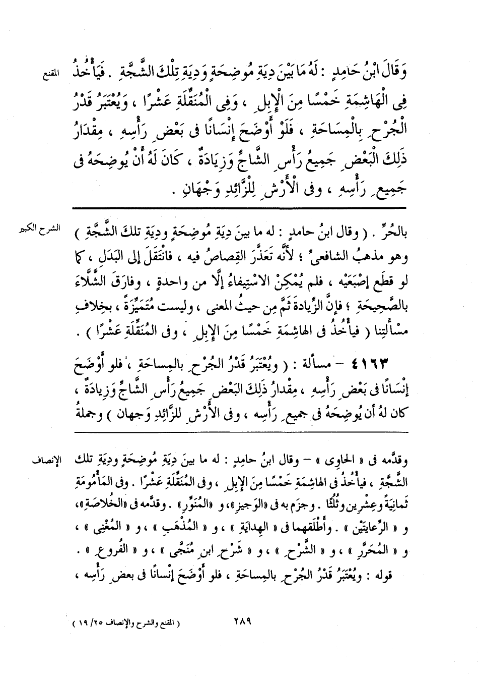 وقدَّمه فى «الحاوِى» - وقال ابنُ حامِدٍ: له ما بينَ دِيَةِ مُوضِحَةٍ ودِيَةِ تلك الشَّجَّةِ، فيأْخُذُ فى الهاشِمَةِ خَمْسًا مِنَ الإبِلِ، وفى المُنَقِّلَةِ عَشْرًا. وفى المَأْمُومَةِ ثَمانِيَةً وعِشْرِين وثُلُثًا. وجزَم به فى «الوَجيزِ»، و «المُنَوِّرِ». وقدَّمه فى «الخُلاصَةِ»، و «الرِّعايتَيْن». وأَطْلَقهما فى «الهِدايَةِ»، و «المُذْهبِ»، و «المُغْنِى»، و «المُحَرَّرِ»، و «الشَّرْحِ»، و «شَرْحِ ابنِ مُنَجَّى»، و «الفُروعِ».