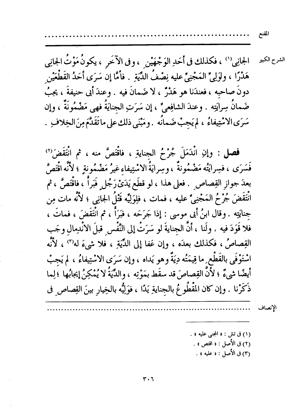 فصل: وإنِ انْدَمَلَ جُرْحُ الجِنايةِ، فاقْتَصَّ منه، ثم انْتَقَضَ (¬2) فَسَرَى، فسِرايَتُه مَضْمُونةٌ، وسِرايَةُ الاسْتِيفاءِ غيرُ مَضْمُونةٍ؛ لأنَّه اقْتَصَّ بعدَ جوازِ القِصاصِ. فعلى هذا، لو قطَع يَدَىْ رَجُلٍ فَبَرأَ، فاقْتَصَّ، ثم انْتَقَضَ جُرْحُ المَجْنِىِّ عليه، فمات، فلِوَلِيِّه قَتْلُ الجانِى؛ لأنَّه مات مِن جِنايَتِه. وقال ابنُ أبى موسى: إذا جَرَحَه، فبَرَأَ، ثم انْتَقَضَ، فماتَ، فلا قَوَدَ فيه؛ ولَنا، أنَّ الجِنايةَ لو سَرَتْ إلى النَّفْسِ قبلَ الانْدِمالِ وجَب القِصاصُ، فكذلك بعدَه، وإن عَفا إلى الدِّيَةِ، فلا شئَ له (¬3)، لأنَّه اسْتَوْفَى بالقَطْعِ ما قِيمَتُه دِيَةٌ وهو يَداه، وإن سَرَى الاسْتِيفاءُ، لم يَجِبْ أيضًا شئٌ؛ لأَنَّ القِصاصَ قد سقَط بمَوْتِه، والدِّيَةُ لا يُمْكِنُ إيجابُها؛ لِما ذَكَرْنا. وإن كان المقْطُوعُ بالجِنايةِ يَدًا، فوَلِيُّه بالخِيارِ بينَ القِصاصِ في