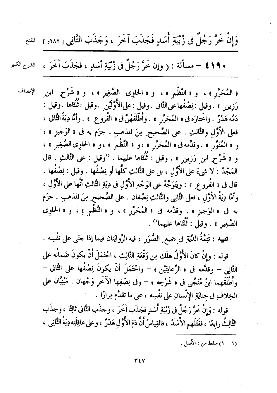 قوله: وَإِنْ خَرَّ رَجُلٌ فى زُبْيَةِ أَسَدٍ فجَذَب آخَرَ، وجذَب الثَّانى ثالِثًا، وجذَب الثَّالِثُ رابِعًا، فقَتَلَهم الأسَدُ، فالقِياسُ أنَّ دَمَ الأَوَّلِ هَدْرٌ، وعلى عاقِلَتِه دِيَةُ الثَّانِى،