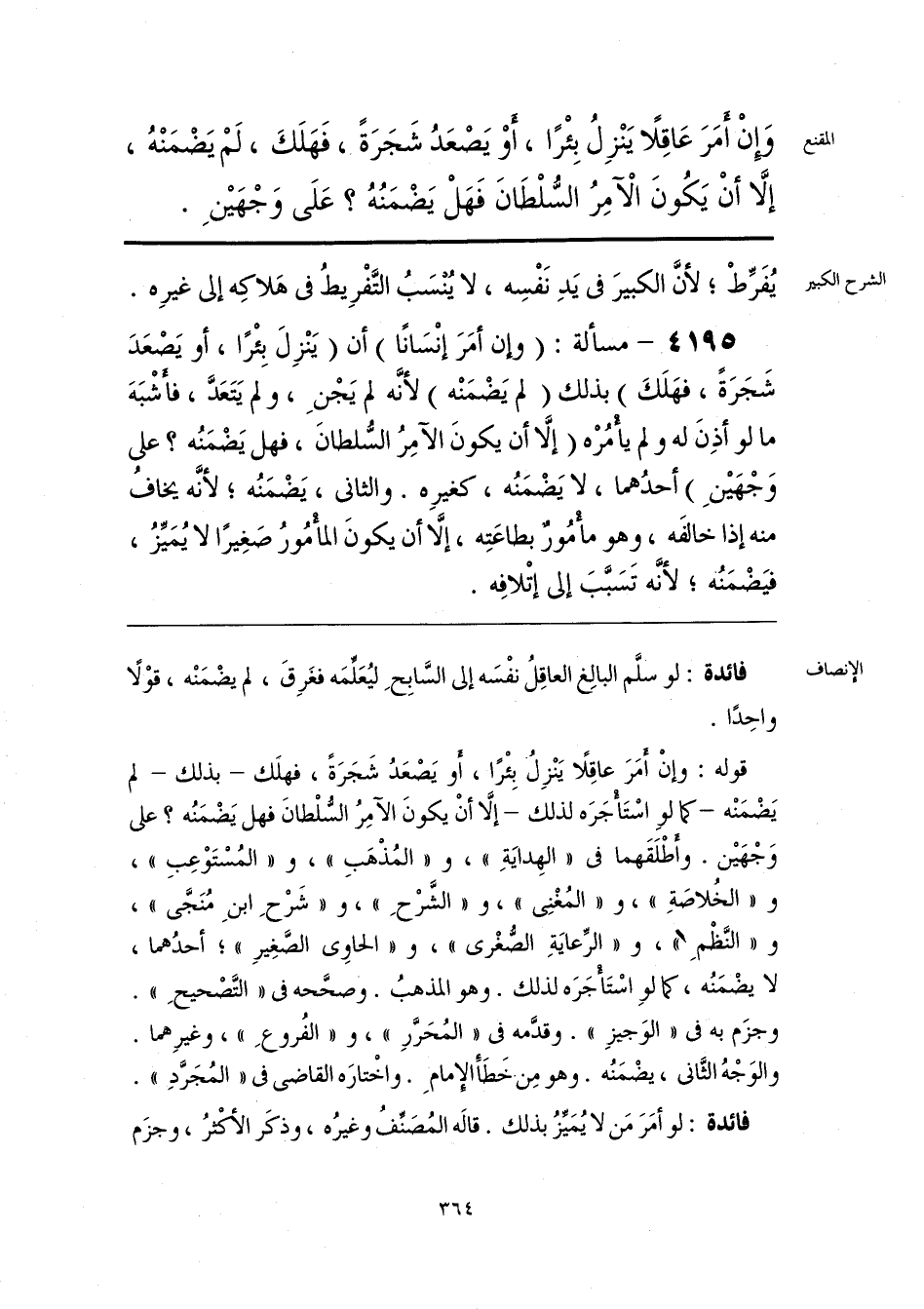 قوله: وإنْ أَمَرَ عاقِلًا يَنْزِلُ بِئْرًا، أو يَصْعَدُ شَجَرَةً، فهلَك -بذلك- لم يَضْمَنْه -كما لوِ اسْتَأْجَرَه لذلك- إلَّا أَنْ يكونَ الآمِرُ السُّلْطانَ فهل يَضمَنُه؟ على وَجْهَيْن. وأطْلَقَهما فى «الهِدايَةِ»، و «المُذْهَبِ»، و «المُسْتَوْعِبِ»، و «الخُلاصَةِ»، و «المُغْنِى»، و «الشَّرْحِ»، و «شَرْحِ ابنِ مُنَجَّى»، و «النَّظْمِ»، و «الرِّعايَةِ الصُّغْرى»، و «الحاوِى الصَّغِيرِ»؛ أحدُهما، لا يضْمَنُه، كما لوِ اسْتَأْجَرَه لذلك. وهو المذهبُ. وصحَّحه فى «التَّصْحيحِ». وجزَم به فى «الوَجيزِ». وقدَّمه فى «المُحَرَّرِ»، و «الفُروعِ»، وغيرِهما. والوَجْهُ الثَّانى، يضْمَنُه. وهو مِن خَطَأَ الإِمامِ. واخْتارَه القاضى فى «المُجَرَّدِ».