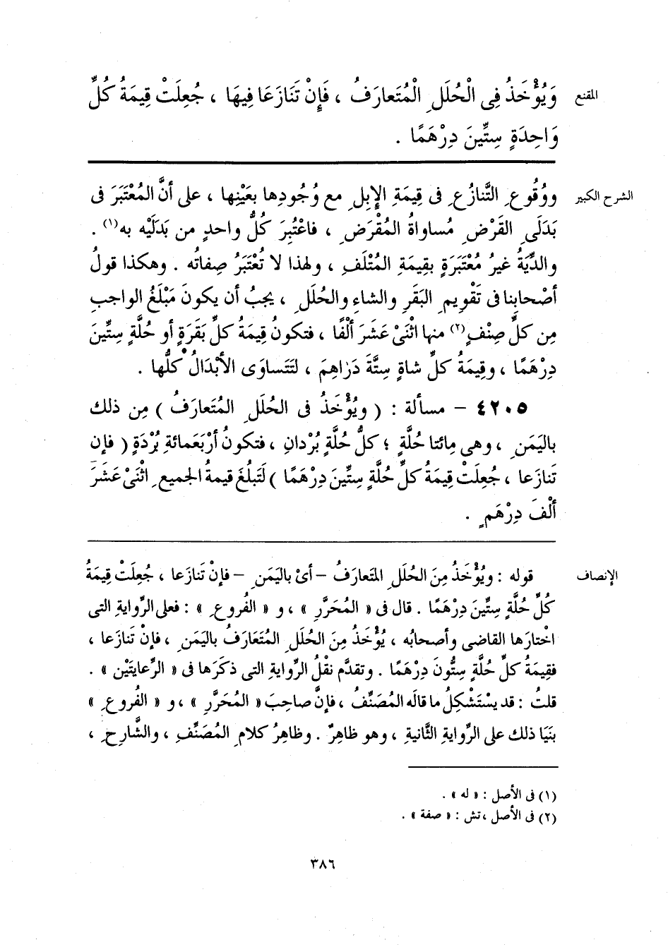 قوله: ويُؤْخَذُ مِنَ الحُلَلِ المتَعارَفُ -أىْ باليَمَنِ- فإنْ تَنازَعا، جُعِلَتْ قِيمَةُ كُلِّ حُلَّةٍ سِتينَ دِرْهَمًا. قال فى «المُحَرَّرِ»، و «الفُروعِ»: فعلى الرِّوايةِ التى اخْتارَها القاضى وأصحابُه، يُؤْخَذُ مِنَ الحُلَلِ المُتَعَارَف باليَمَنِ، فإن تَنازَعا، فقِيمَةُ كلِّ حُلَّةٍ سِتُّونَ دِرْهَمًا. وتقدَّم نقْلُ الرِّوايةِ التى ذكَرَها فى «الرِّعايتَيْن». قلتُ: قد يسْتَشْكِلُ ما قالَه المُصَنِّفُ، فإنَّ صاحِبَ «المُحَرَّرِ»، و «الفُروعِ» بنَيَا ذلك على الرِّوايةِ الثَّانيةِ، وهو ظاهِرٌ. وظاهِرُ كلامِ المُصَنِّفِ، والشَّارِحِ،