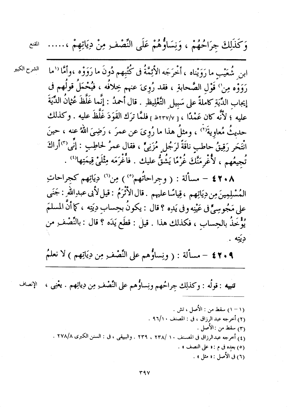 تنبيه: قولُه: وكذلِك جِراحُهم ونِساؤُهم على النِّصْفِ مِن دِياتِهم. يعْنِى،