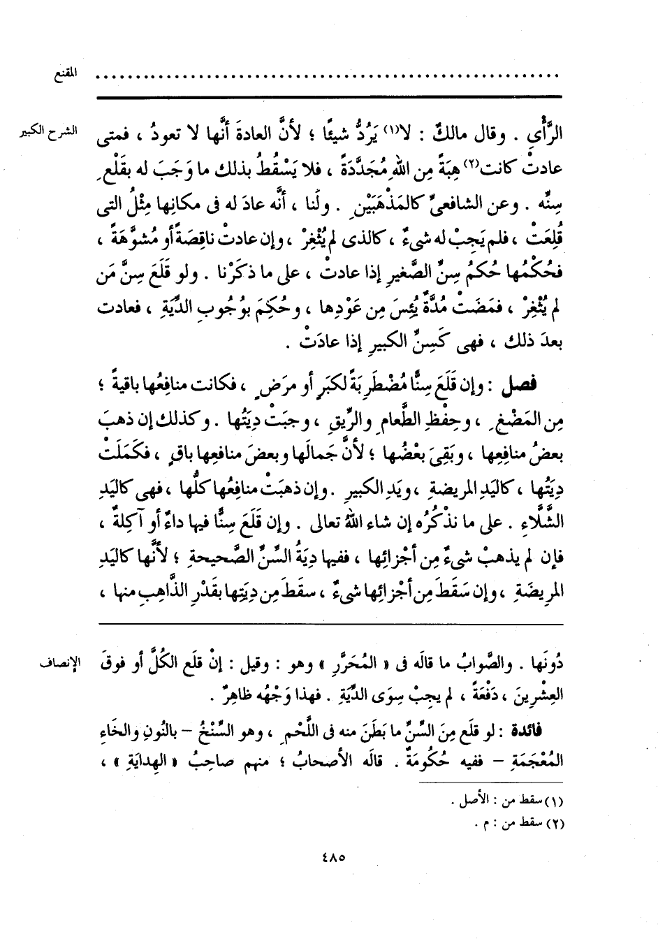 فائدة: لو قلَع مِنَ السِّنِّ ما بَطَنَ منه فى اللَّحْمِ، وهو السِّنخُ -بالنُونِ والخَاءِ المُعْجَمَةِ- ففيه حُكُومَةٌ. قالَه الأصحابُ؛ منهم صاحِبُ «الهِدايَةِ»،