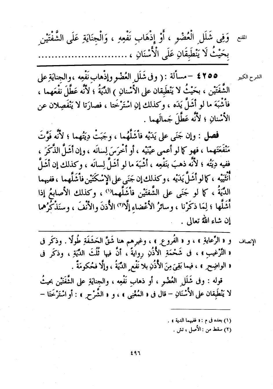 و «الرِّعايَةِ»، و «الفُروعِ»، وغيرِهم هنا شَقَّ الحَشَفَةِ طُولًا. وذكَر فى «التَّرْغيبِ»، فى شَحْمَةِ الأُذُنِ رِوايةً، أنَّ فيها ثُلُثَ الدِّيَةِ، وذكَر فى «الواضِحِ»، فيما بَقِىَ مِنَ الأُذُنِ بلا نَفْعٍ الدِّيَةُ، وإلَّا فحُكومَةٌ.