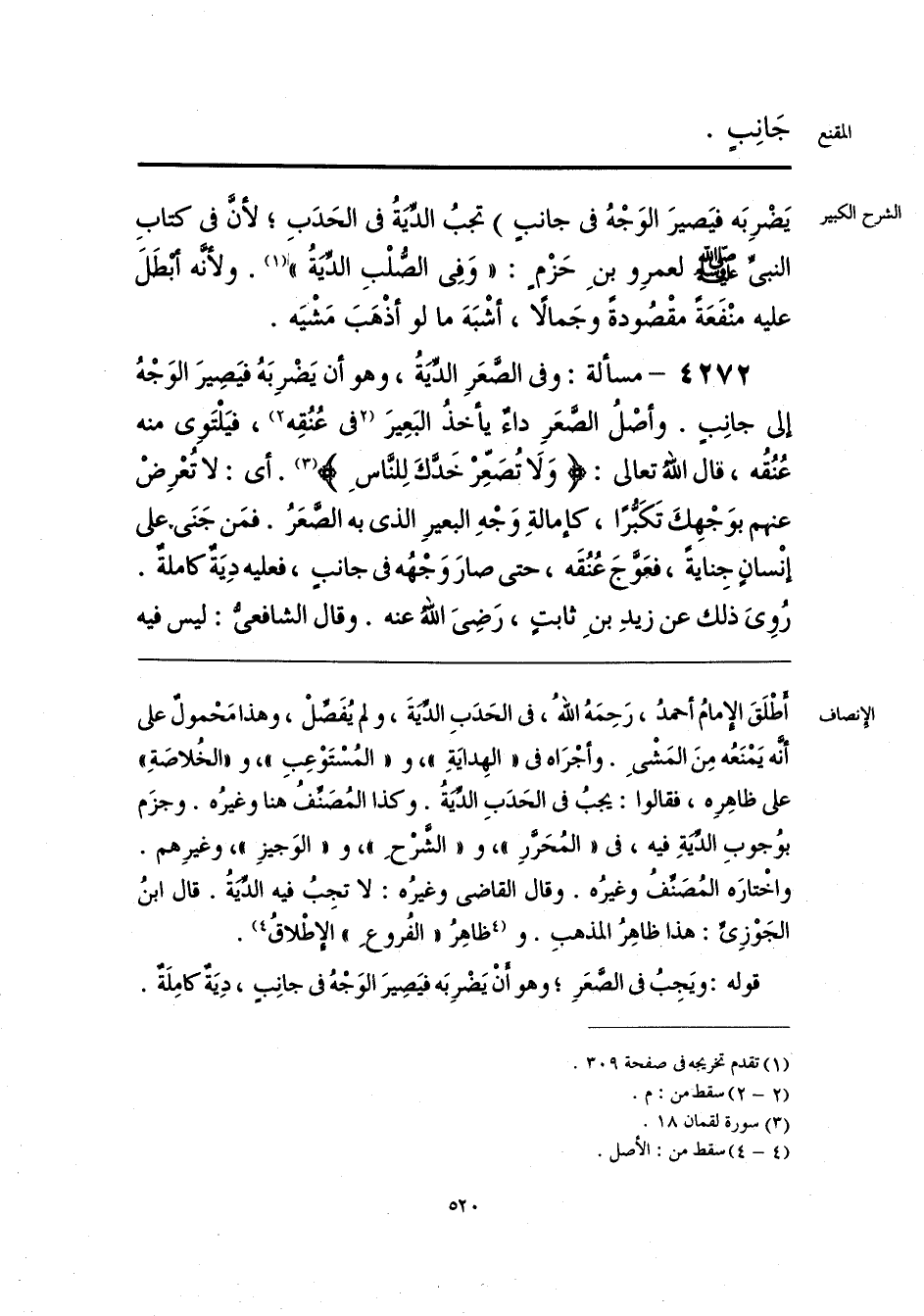 قوله: ويَجِبُ فى الصَّعَرِ؛ وهو أَنْ يَضْرِبَه فيَصِيرَ الوَجْهُ فى جانِب، دِيَةٌ كامِلَةٌ.