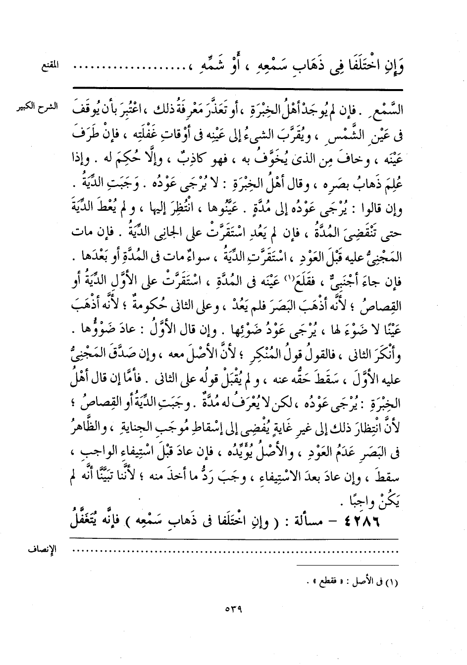وإنِ اخْتَلَفَا فى ذَهَابِ سَمْعِهِ، أَوْ شَمِّهِ,