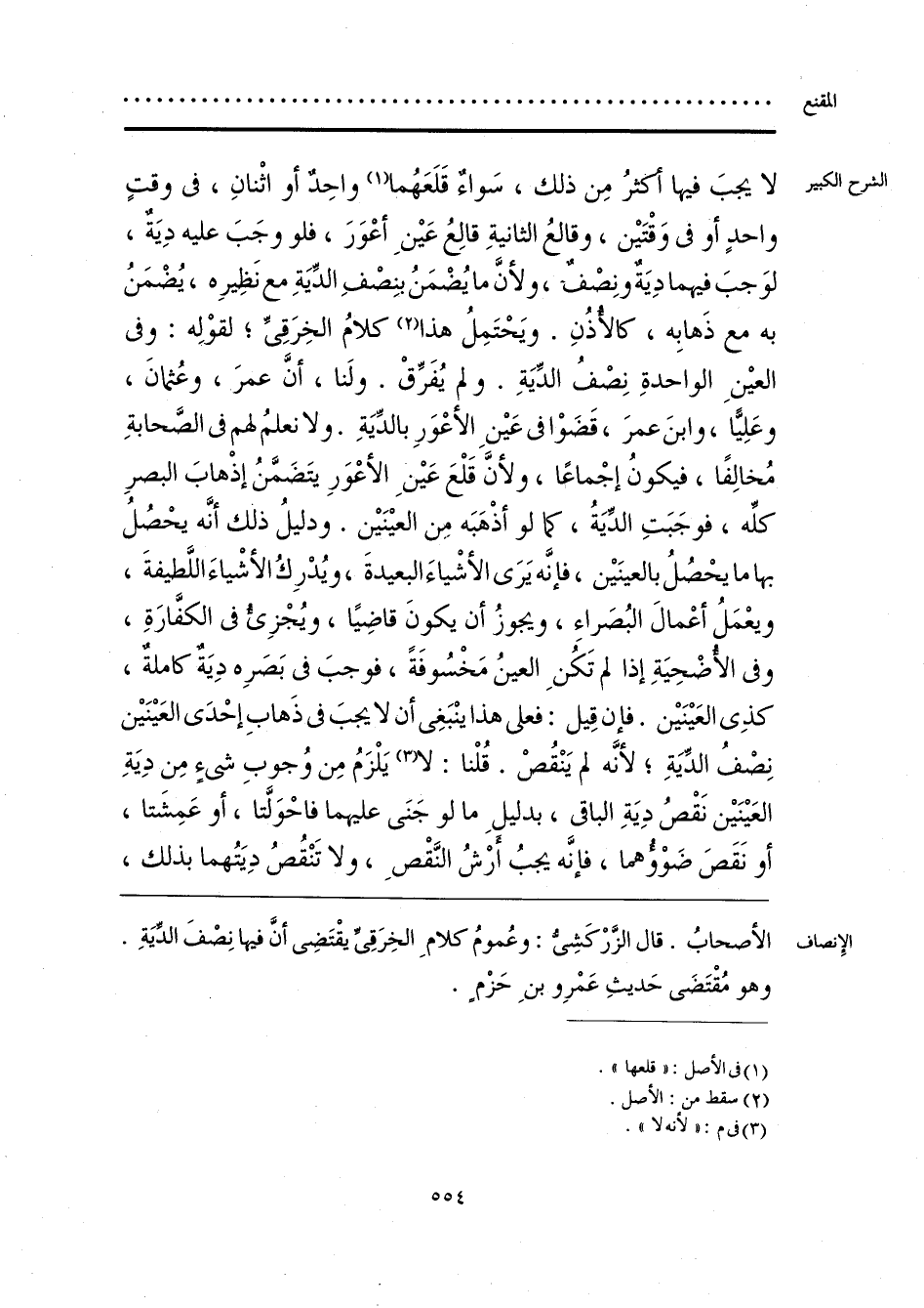 الأصحابُ. قال الزَّرْكَشِىُّ: وعُمومُ كلامِ الخِرَقِىِّ يقْتَضِى أنَّ فيها نِصْفَ الدِّيَةِ. وهو مُقْتَضَى حَديثِ عَمْرِو بنِ حَزْمٍ.