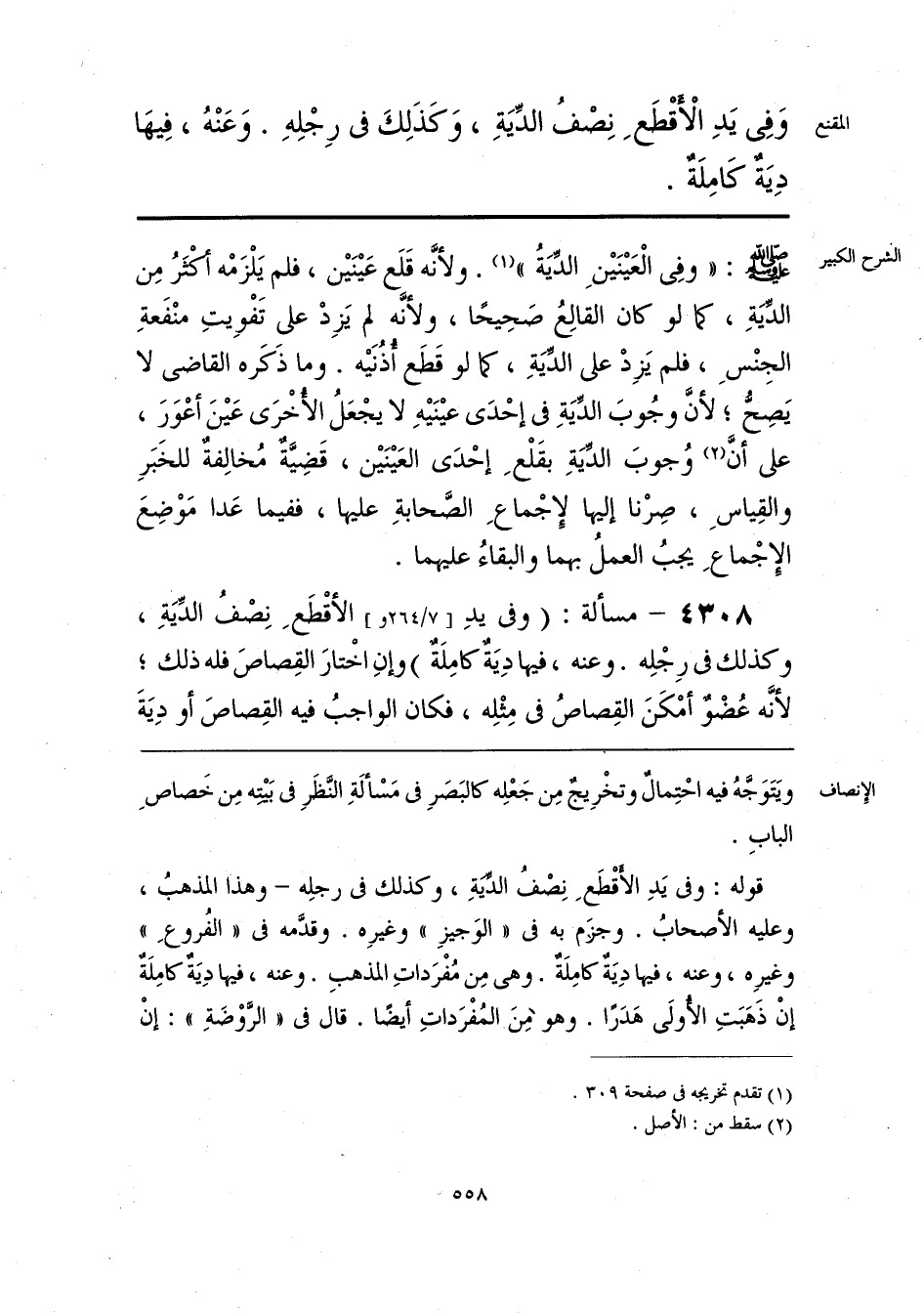 وَفِى يَدِ الأَقْطَعِ نِصْفُ الدِّيَةِ، وَكَذَلِكَ فى رِجْلِهِ. وَعَنْهُ، فِيهَا دِيَةٌ كَامِلَةٌ.