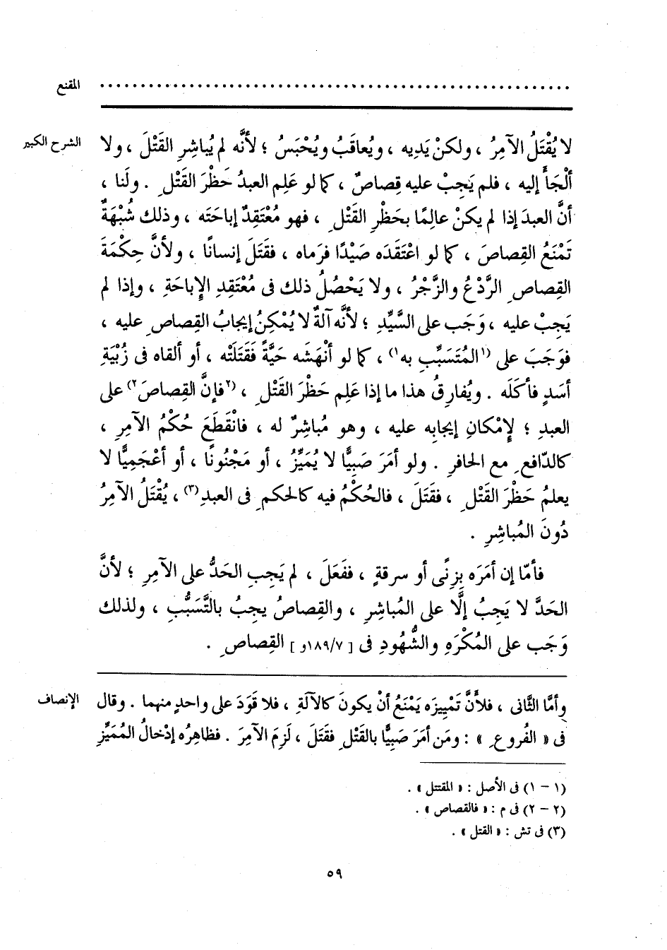 وأمَّا الثَّانى، فلأَنَّ تَمْيِيزَه يَمْنَعُ أَنْ يكونَ كالآلةِ، فلا قَوَدَ كل واحدٍ منهما. وقال فى «الفُروعِ»: ومَن أمَرَ صَبِيًّا بالقَتْلِ فقَتَلَ، لَزِمَ الآمِرَ. فظاهِرُه إدْخالُ المُمَيِّزِ