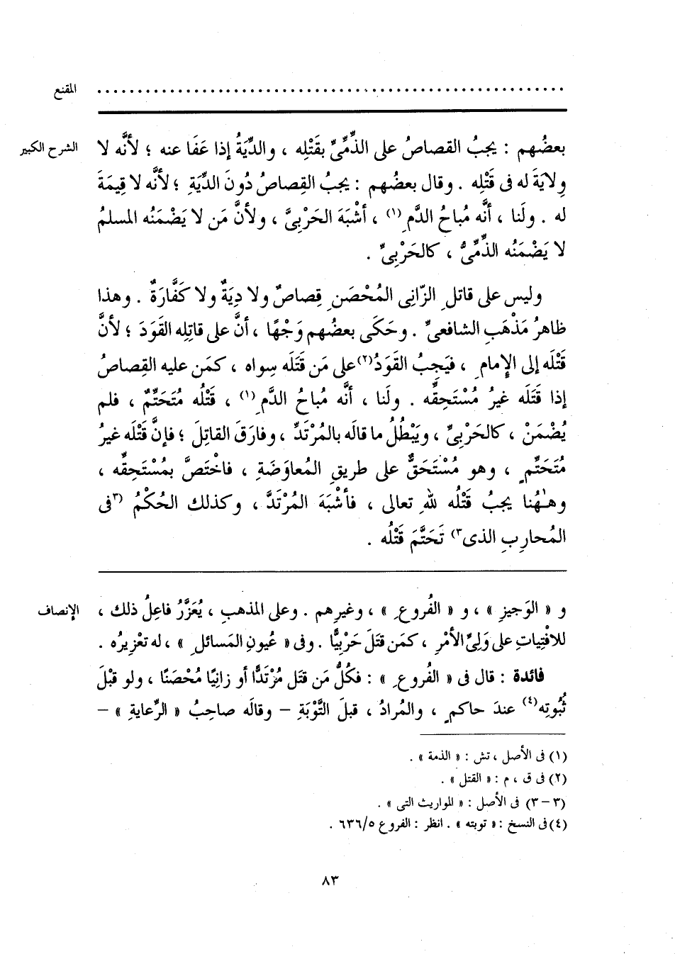 فائدة: قال فى «الفُروعِ»: فكلُّ مَن قتَل مُرْتَدًّا أو زانِيًا مُحْصَنًا، ولو قبْلَ ثُبُوتِه (¬1) عندَ حاكمٍ، والمُرادُ، قبلَ التَّوْبَةِ -وقالَه صاحِبُ «الرِّعايةِ» -