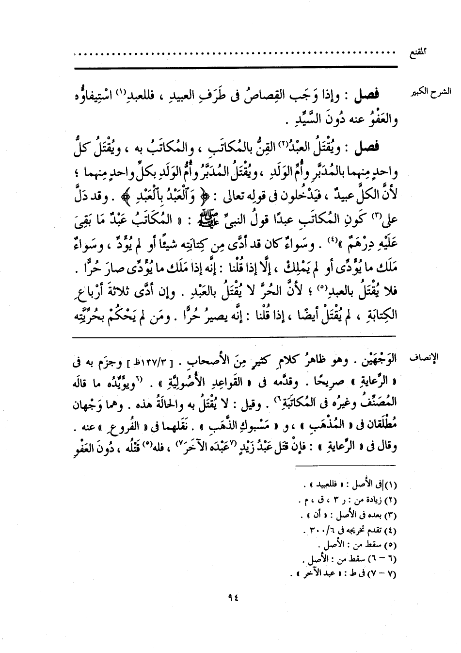 الوَجْهَيْن. وهو ظاهرُ كلامِ كثيرٍ مِنَ الأصحابِ. وجزَم به فى «الرِّعايَةِ» صرِيحًا. وقدَّمه فى «القَواعِدِ الأُصُولِيَّةِ». [ويؤَيِّدُه ما قالَه المُصَنِّفُ وغيرُه فى المُكاَتبَةِ] (¬1). وقيل: لا يُقْتَلُ به والحالَة هذه. وهما وَجْهان مُطْلَقان فى «المُذْهَبِ»، و «مَسْبوكِ الذَّهبِ». نَقَلهما فى «الفُروعِ» عنه. وقال فى «الرِّعايَةِ»: فإنْ قتَل عَبْدُ زَيْدٍ [عَبْدَه الآخَرَ] (¬2)، قَتْله (5) قَتْلُه، دُونَ العَفْوِ