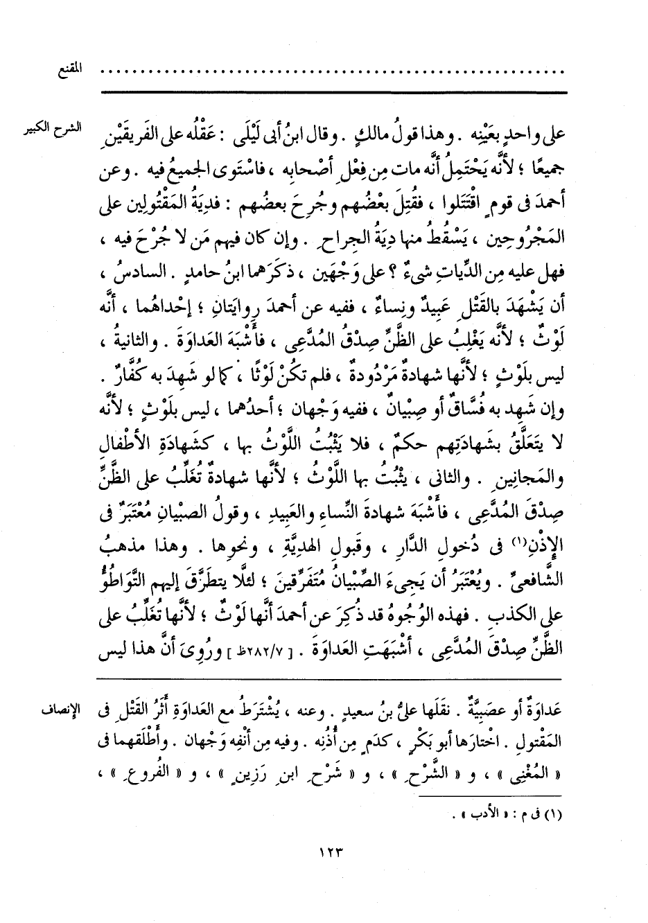 عَداوَةٌ أو عصَبِيَّةٌ. نقَلَها علىُّ بنُ سعيدٍ. وعنه، يُشْتَرَطُ مع العَداوَةِ أَثَرُ القَتْلِ فى المَقْتولِ. اخْتارَها أبو بَكْرٍ، كدَمٍ مِن أُذُنِه. وفيه مِن أنْفِه وَجْهان. وأَطْلَقهما فى «المُغْنِى»، و «الشَّرْحِ»، و «شَرْحِ ابنِ رَزِينٍ»، و «الفُروعِ»،