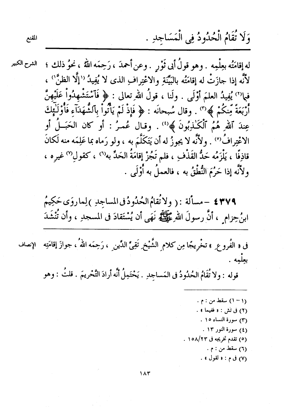 وَلَا تُقَامُ الْحُدُودُ فِى الْمَسَاجِدِ.