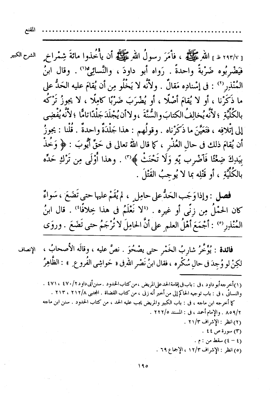 فائدة: يُؤَخَّرُ شارِبُ الخَمْرِ حتى يصْحُوَ. نصَّ عليه، وقالَه الأصحابُ، لكِنْ لو وُجِدَ فى حالِ سُكْرِه، فقال ابنُ نَصْرِ اللَّهِ فى «حَواشِى الفُروعِ»: الظَّاهِرُ