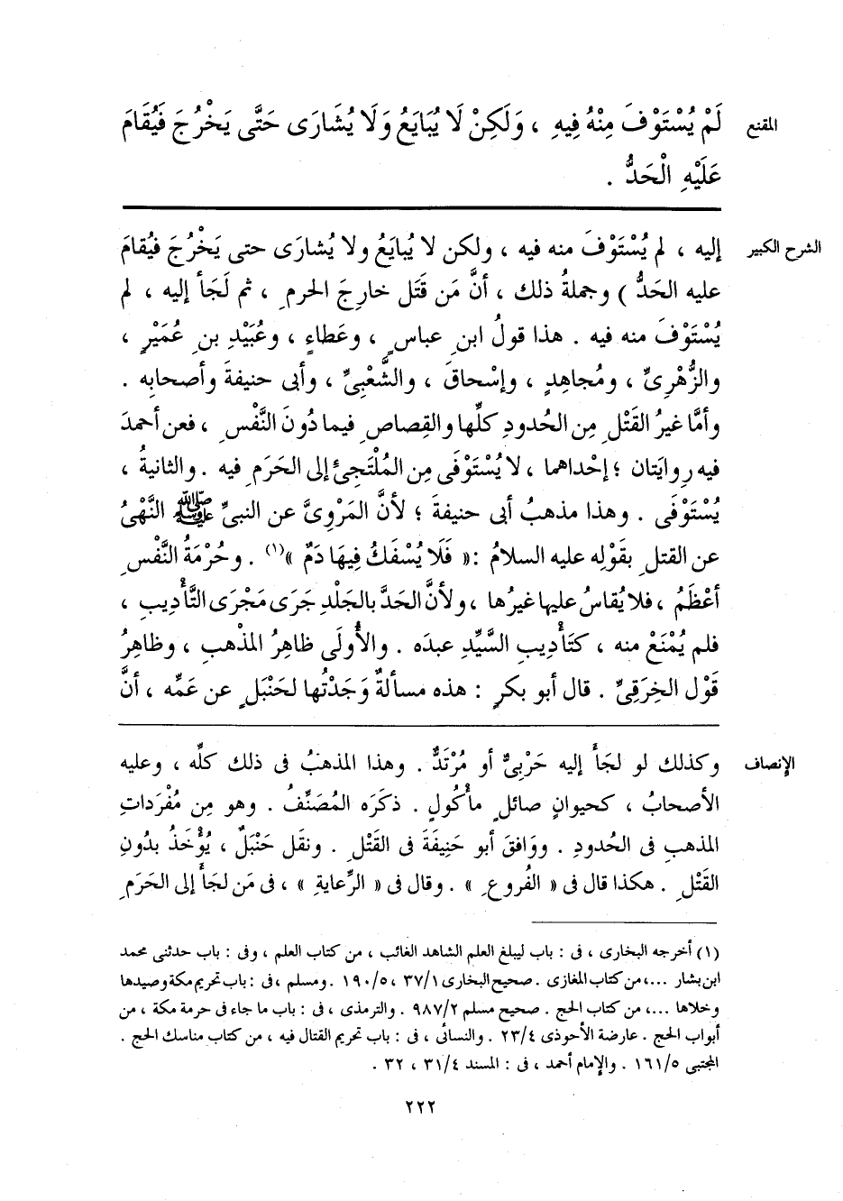 وكذلك لو لجَأَ إليه حَرْبِىٌّ أو مُرْتَدٌّ. وهذا المذهب فى ذلك كلِّه، وعليه الأصحابُ، كحيوانٍ صائل مأكُولٍ. ذكَرَه المُصَنِّفُ. وهو مِن مُفْرَداتِ المذهبِ فى الحُدودِ. ووَافقَ أبو حَنِيفَةَ فى القَتْلِ. ونقَل حَنْبَل، يُؤْخَذُ بدُونِ القَتْلِ. هكذا قال فى «الفُروعِ». وقال فى «الرِّعايَةِ»، فى مَن لجَأَ إلى الحَرَمِ