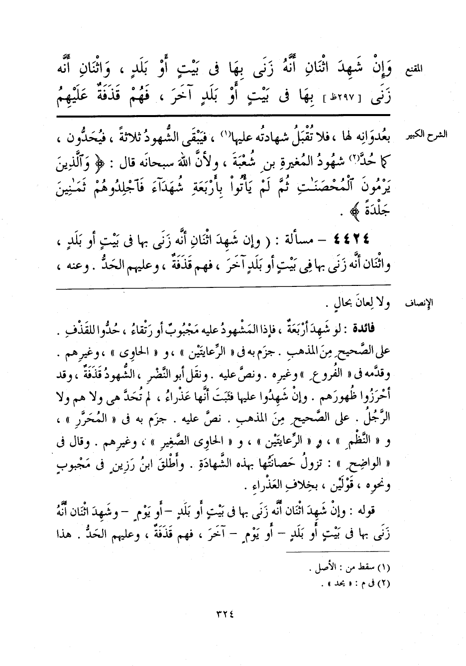 وَإِنْ شَهِدَ اثْنَانِ أنَّهُ زَنَى بِهَا فى بَيْتٍ أَوْ بَلَدٍ، وَاثنَانِ أنَّه زَنى بِهَا فى بَيْتٍ أَوْ بَلَدٍ آخَرَ، فَهُمْ قَذَفَةٌ عَلَيْهِمُ