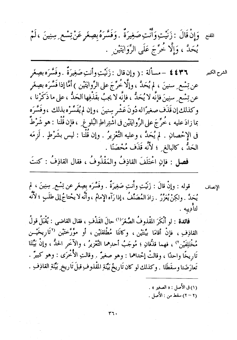 قوله: وإنْ قالَ: زَنَيْتِ وأَنتِ صَغِيرَةٌ. وفَسَّرَه بصِغَرٍ عن تِسْعِ سِنِينَ، لم يُحَدَّ. ولكِنْ يُعَزَّرُ. زادَ المُصَنِّفُ، إذا رَآه الإِمامُ، وأَنَّه لا يحْتاجُ إلى طلَبٍ؛ لأنَّه لتأْدِيبِه.