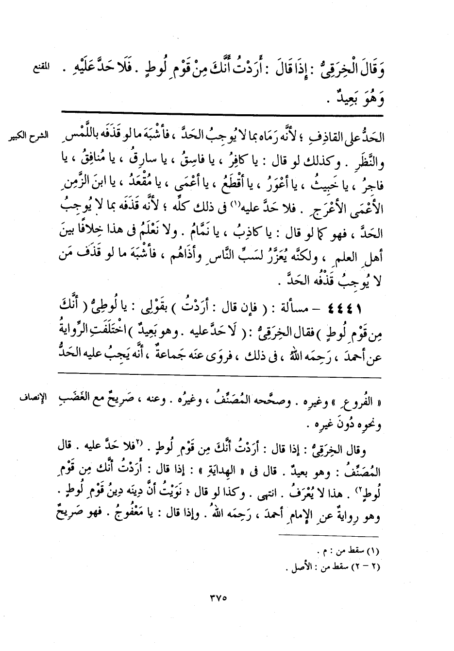 وَقَالَ الْخِرَقِىُّ: إِذَا قَالَ: أَرَدْتُ أنَّكَ مِنْ قَوْمِ لُوطٍ. فَلَا حَدَّ عَلَيْهِ وَهُوَ بَعِيدٌ.