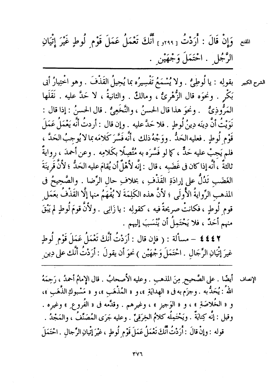 أيضًا. على الصَّحيحِ مِنَ المذهبِ. وعليه الأصحابُ. قال الإِمامُ أحمدُ، رَحِمَهُ اللَّهُ: يُحَدُّ به. وجزَم به فى «الهِدايَةِ»، و «المُذْهَبِ»، و «مَسْبوكِ الذَّهَبِ»، و «الخُلاصَةِ»، و «الوَجيزِ»، وغيرِهم. وقدَّمه فى «الفُروعِ» وغيرِه. وقيل: إنَّه كِنايَةٌ. ويَحْتَمِلُه كلامُ الخِرَقِىِّ. وعليه جَرَى المُصَنِّفُ، والمَجْدُ.