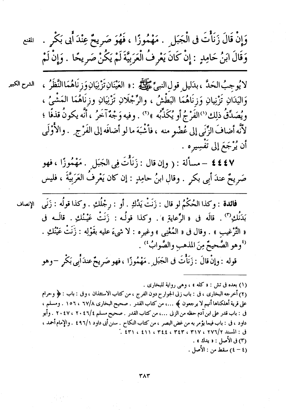 وَإِنْ قَالَ زَنَأْتَ فى الْجَبَلِ. مَهْمُوزًا، فَهُوَ صَرِيحٌ عِنْدَ أبى بَكْرٍ. وَقَالَ ابَنُ حَامِدٍ: إِنْ كَانَ يَعْرِفُ الْعَرَبِيَّةَ لَمْ يَكُنْ صَرِيحًا. وَإِنْ لَمْ