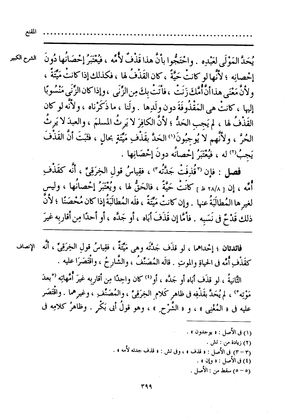 فائدتان؛ إحْداهما، لو قذَف جَدَّتَه وهى مَيِّتَةٌ، فقِياسُ قولِ الخِرَقِىِّ، أنَّه كقَذفِ أُمِّه فى الحياةِ والموتِ. قالَه المُصَنِّفُ، والشَّارِحُ، واقْتَصَرَا عليه.