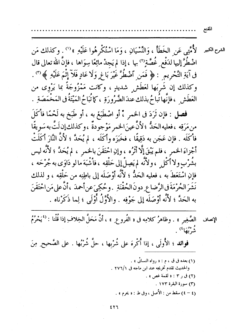 فوائد؛ الأُولَى، إذا أُكْرِهَ على شُرْبِها، حلَّ شُرْبُها. على الصَّحيحِ مِنَ