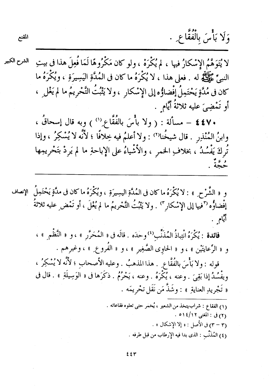 فائدة: يُكْرهُ انْتِباذُ المُذَنِّبِ (¬2) وحدَه. قالَه فى «المُحَرَّرِ»، و «النَّظْمِ»، و «الرِّعايتَيْن»، و «الحاوِى الصَّغِيرِ»، و «الفُروعِ»، وغيرِهم.