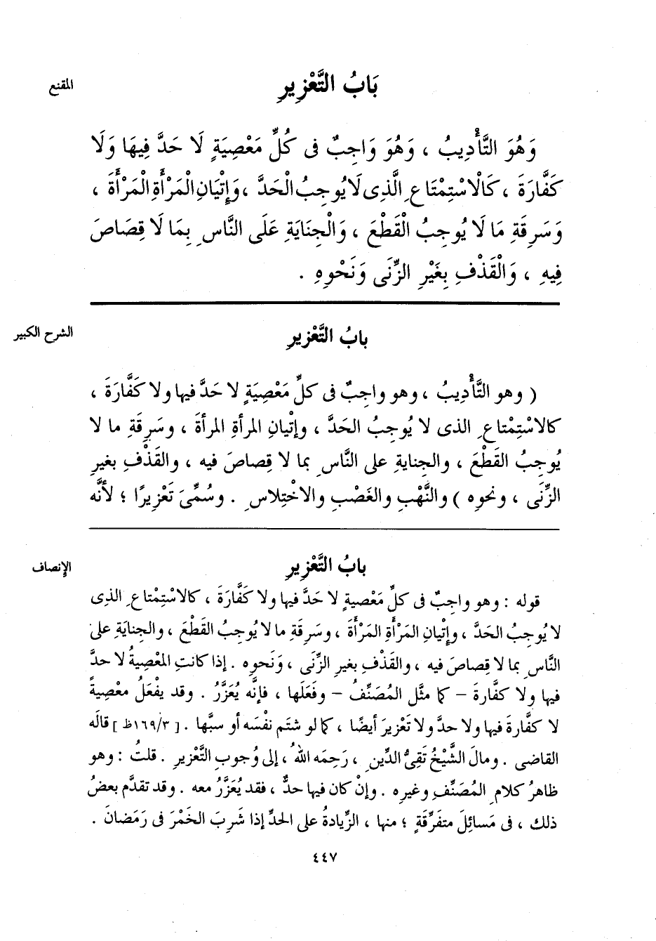 قوله: وهو واجِبٌ فى كلِّ مَعْصيةٍ لا حَدَّ فيها ولا كَفَّارَةَ، كالاسْتِمْتاعِ الذِى لا يُوجِت الحَدَّ، وإتْيانِ المَرْأَةِ المَرْأَةَ، وسَرِقَةِ ما لا يُوجِبُ القَطْعَ، والجِنايَةِ على النَّاسِ بما لا قِصاصَ فيه، والقَذْفِ بغيرِ الزِّنَى، وَنَحوِه. إذا كانتِ المعْصِيةُ لا حدَّ فيها ولا كفَّارةَ -كما مثَّل المُصَنِّفُ- وفَعَلَها، فإنَّه يُعَزَّرُ. وقد يفْعَلُ معْصِيةً لا كفَّارةَ فيها ولا حدَّ ولا تَعْزيرَ أيضًا، كما لو شتَم نفْسَه أو سبَّها. قالَه القاضى. ومالَ الشَّيْخُ تَقِىُّ الدِّينِ، رَحِمَه اللَّهُ، إلى وُجوبِ التَّعْزيرِ. قلتُ: وهو ظاهرُ كلامِ المُصَنِّفِ وغيرِه. وإنْ كان فيها حدٌّ، فقد يُعَزَّرُ معه. وقد تقدَّم بعضُ ذلك، فى مَسائِلَ متفَرِّقَةٍ؛ منها، الزِّيادةُ على الحدِّ إذا شَرِبَ الخَمْرَ فى رَمَضانَ.