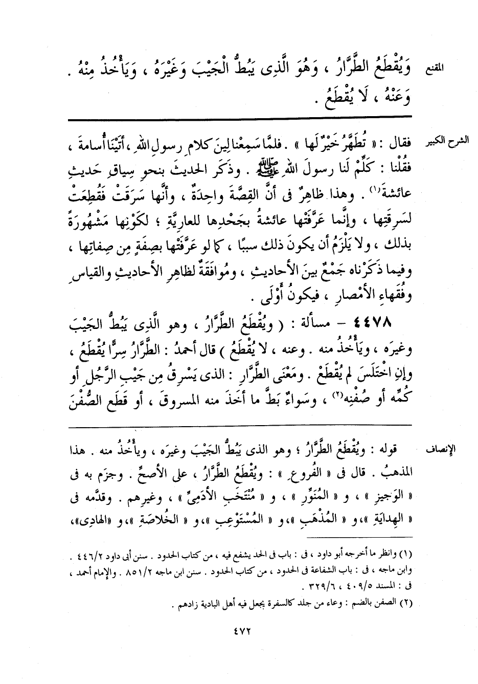 قوله: ويُقْطَعُ الطَّرَّارُ؛ وهو الَّذى يَبُطُّ الجَيْبَ وغيرَه، ويأْخُذُ منه. هذا المذهبُ. قال فى «الفُروعِ»: ويُقْطَعُ الطَّرَّارُ، على الأصحِّ. وجزَم به فى «الوَجيزِ»، و «المُنَوِّرِ»، و «مُنْتَخَبِ الأدَمِىِّ»، وغيرِهم. وقدَّمه فى «الهِدايَةِ»، و «المُذْهَبِ»، و «المُسْتَوْعِبِ»، و «الخُلاصَةِ»، و «الهادِى»،