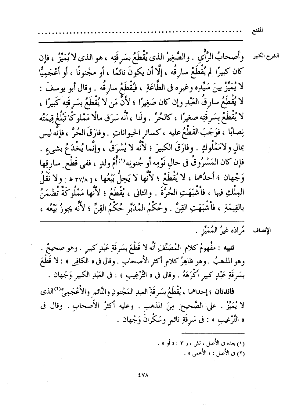 تنبيه: مفْهومُ كلامِ المُصَنِّفِ أنَّه لا قَطْعَ بسَرِقَةِ عَبْدٍ كبيرٍ. وهو صحيحٌ. وهو المذهبُ. وهو ظاهِرُ كلامِ أَكْثرِ الأصحابِ. وقال فى «الكافِى»: لا قَطْعَ بسَرِقَةِ عَبْدٍ كبيرٍ أكْرَهَهُ. وقال فى «التَّرْغِيبِ»: فى العَبْدِ الكبيرِ وَجْهان.