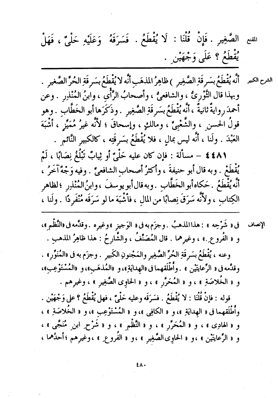 وعنه، يُقْطَعُ بسَرِقَةِ الحُرِّ الصَّغِيرِ والمَجْنونِ الكَبيرِ. وجزَم به فى «المُنَوِّرِ». وقدَّمه فى «الرِّعايتَيْن». وأطْلَقهما فى «الهِدايَةِ»، و «المُذهَبِ»، و «المُسْتَوْعِبِ»، و «الخُلاصَةِ»، و «المُحَرَّرِ»، و «الحاوِى الصَّغِيرِ»، وغيرِهم.