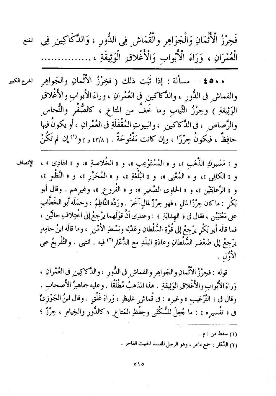 فَحِرْزُ الْأَثْمَانِ وَالْجَوَاهِرِ والْقُمَاشِ فِى الدُّورِ، وَالدَّكَاكِينِ فِى الْعُمْرَانِ، وَرَاءَ الْأَبْوابِ وَالْأَغْلاقِ الْوَثِيقَةِ،
