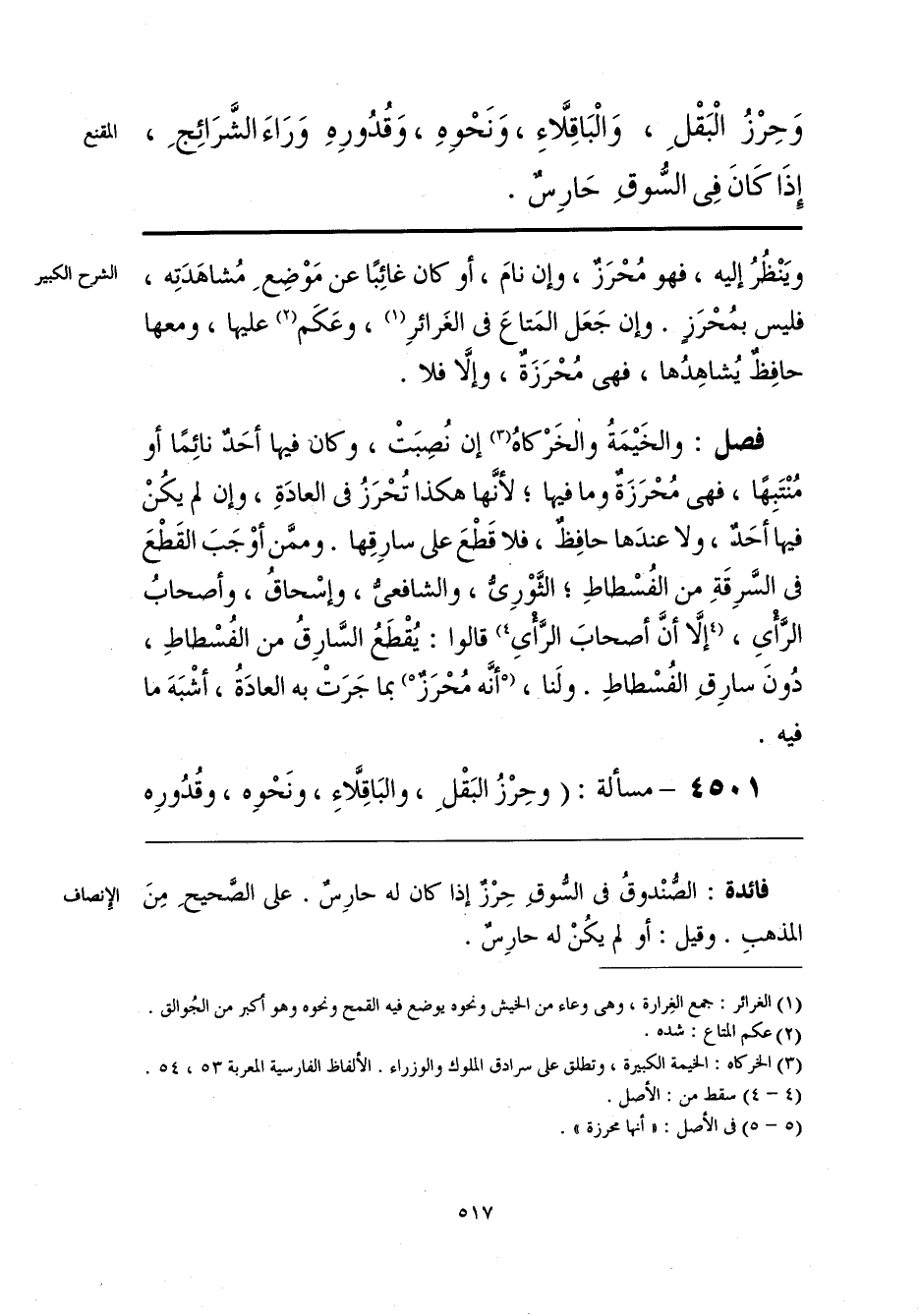فائدة: الصُّنْدوقُ فى السُّوقِ حِرْزٌ إذا كان له حارِسٌ. على الصَّحيحِ مِنَ المذهبِ. وقيل: أو لم يكُنْ له حارِسٌ.
