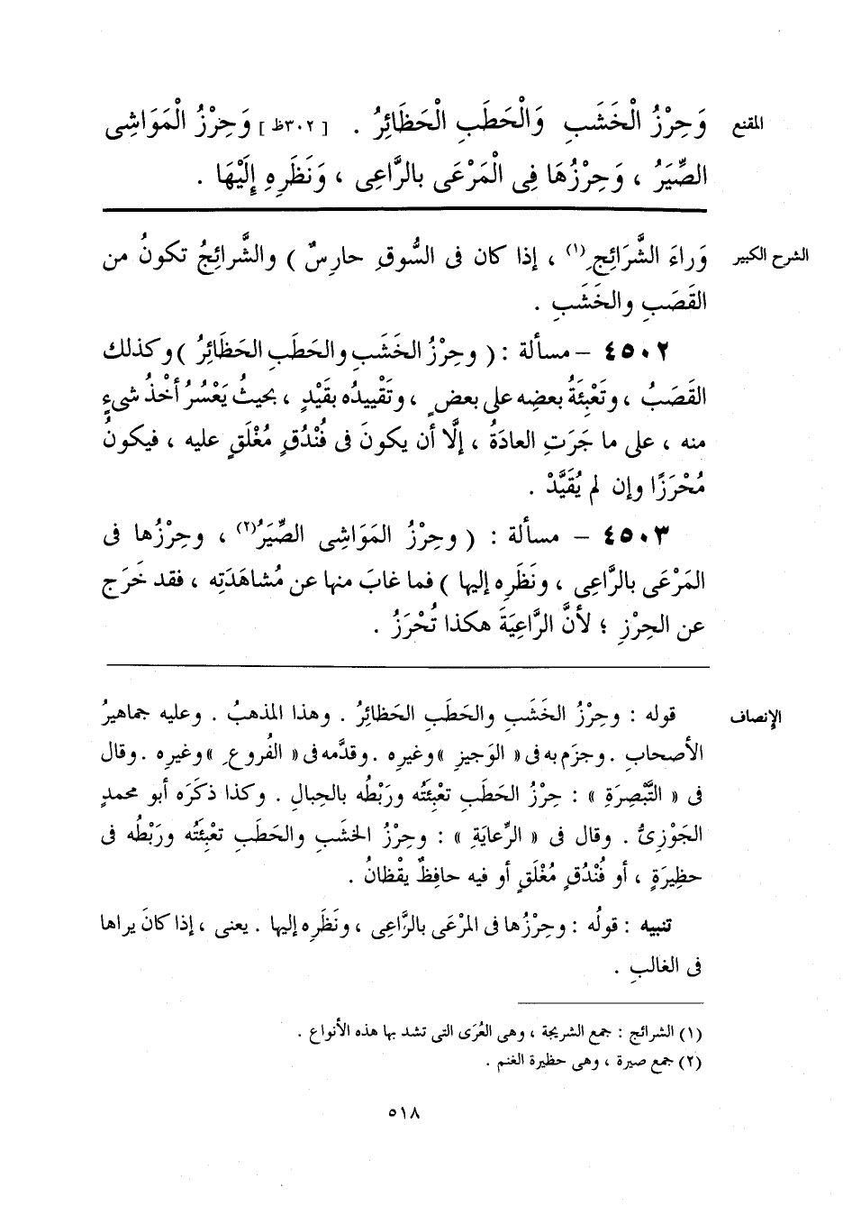 وَحِرْزُ الْخَشَبِ وَالْحَطَبِ الْحَظَائِرُ. وَحِرْزُ الْمَوَاشِى الصِّيَرُ، وَحِرْزُهَا فِى الْمَرْعَى بالرَّاعِى، وَنَظَرِهِ إِلَيْهَا.